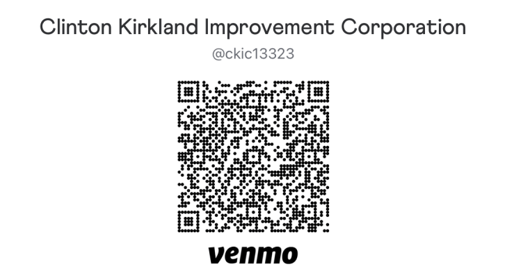 The Clinton Kirkland Improvement Corporation is a public charity, and donations are tax-exempt under IRS Section 501(c) (3). No goods or services are provided by the Clinton Kirkland Improvement Corporation in return for your contribution.